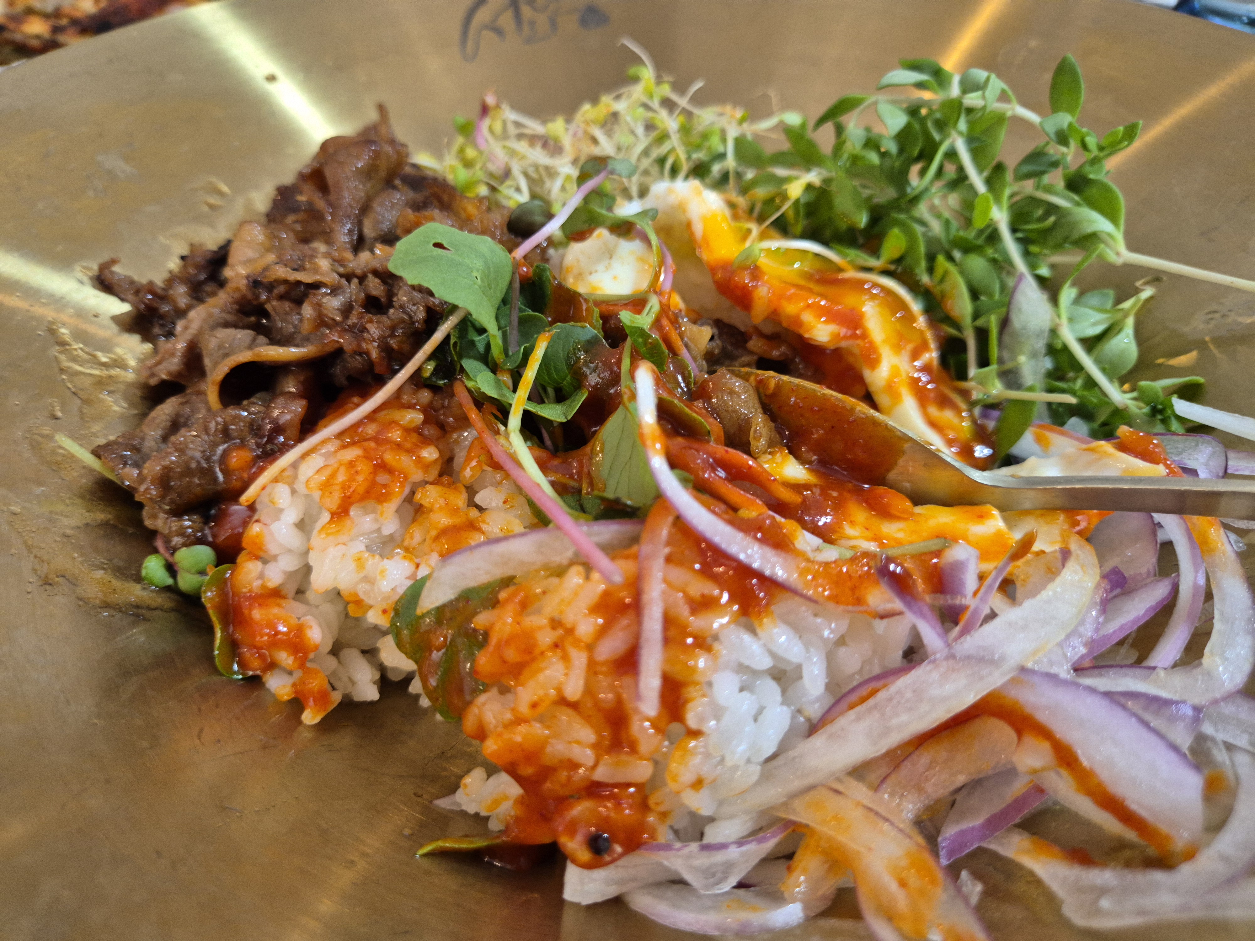 ✔️우삼겹새싹비빔밥 (이번에 처음 먹어봄)