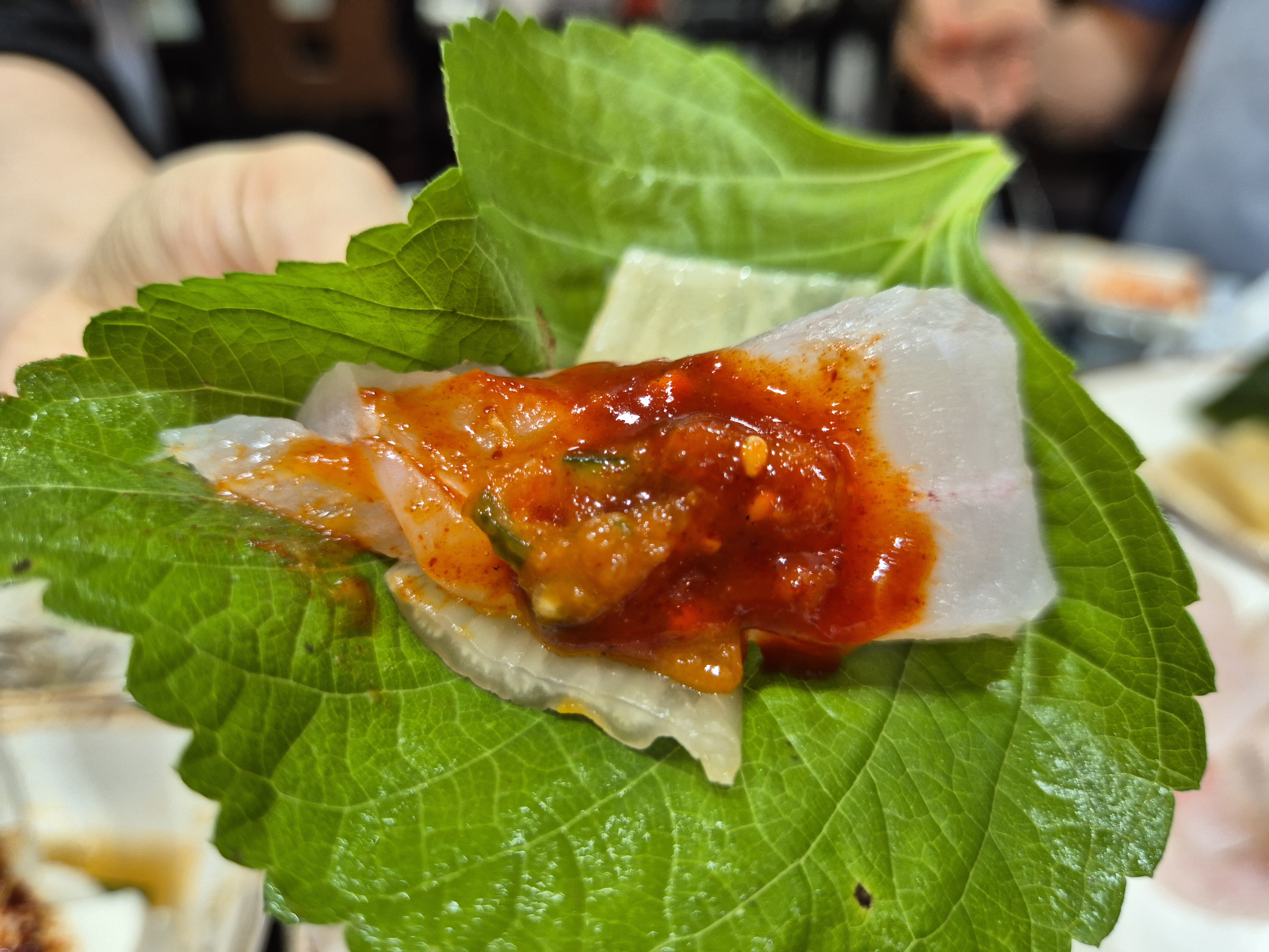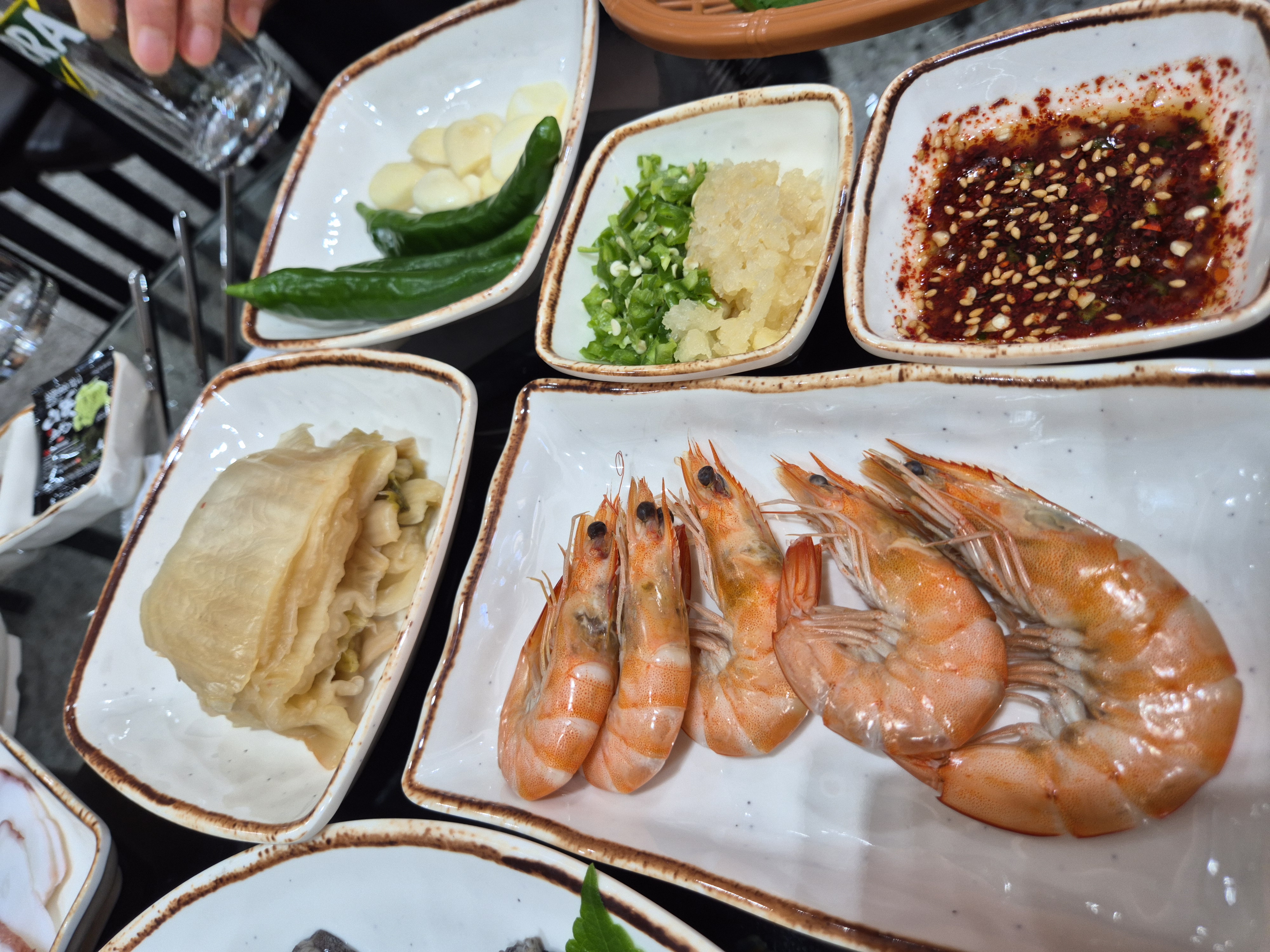 별도로 주문한 해물 세트도 양이 푸짐해서 배가 빵빵해질 정도였고요. 마지막으로 매운탕에 방아잎과 산초를 넣어 남은 회를 샤브샤브로 익혀 먹으니 국물 맛이 시원하고 상쾌했습니다.