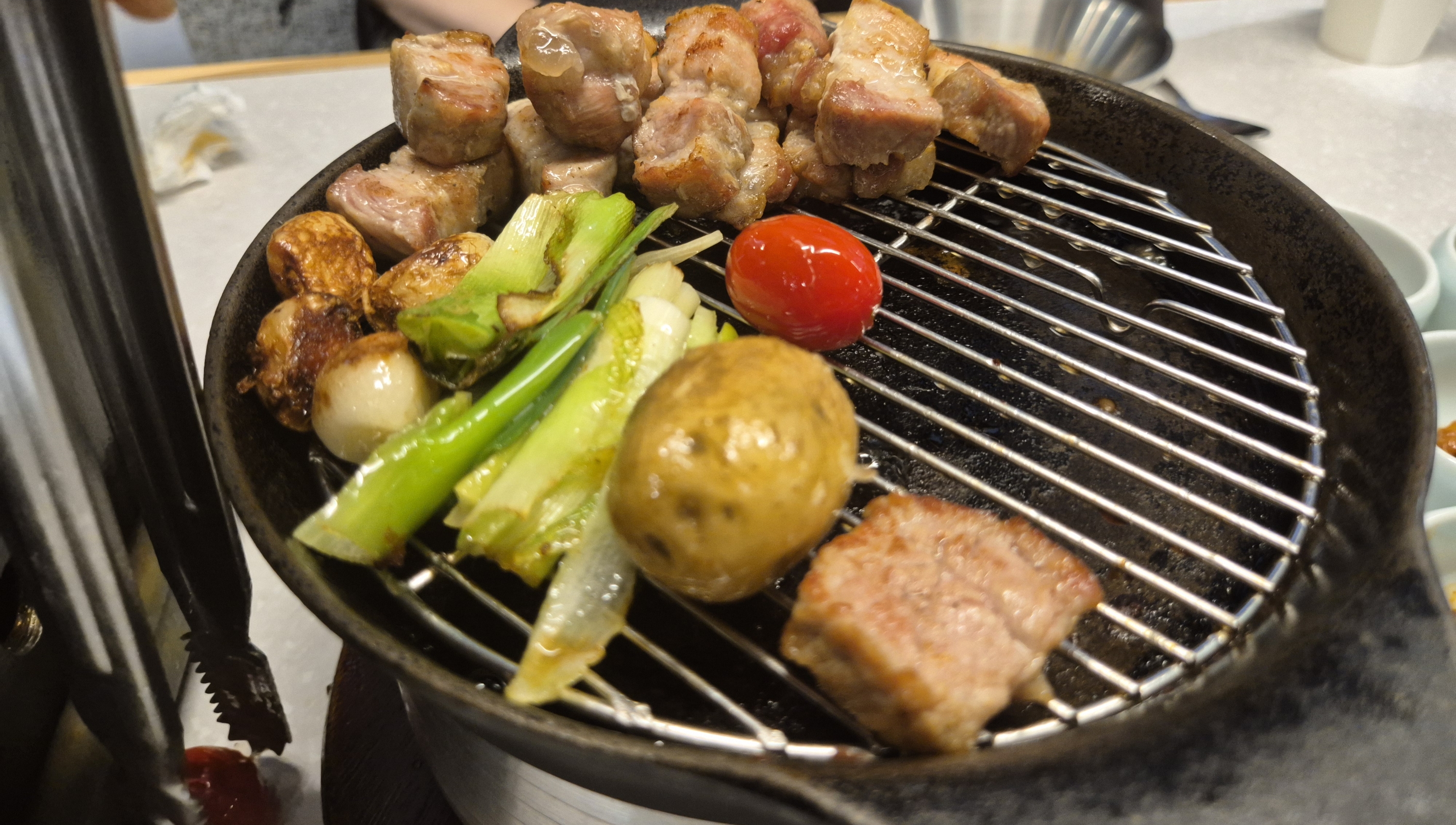 장모님 고기 첫 점 한 입 하시고 표정이 풀렸습니다.