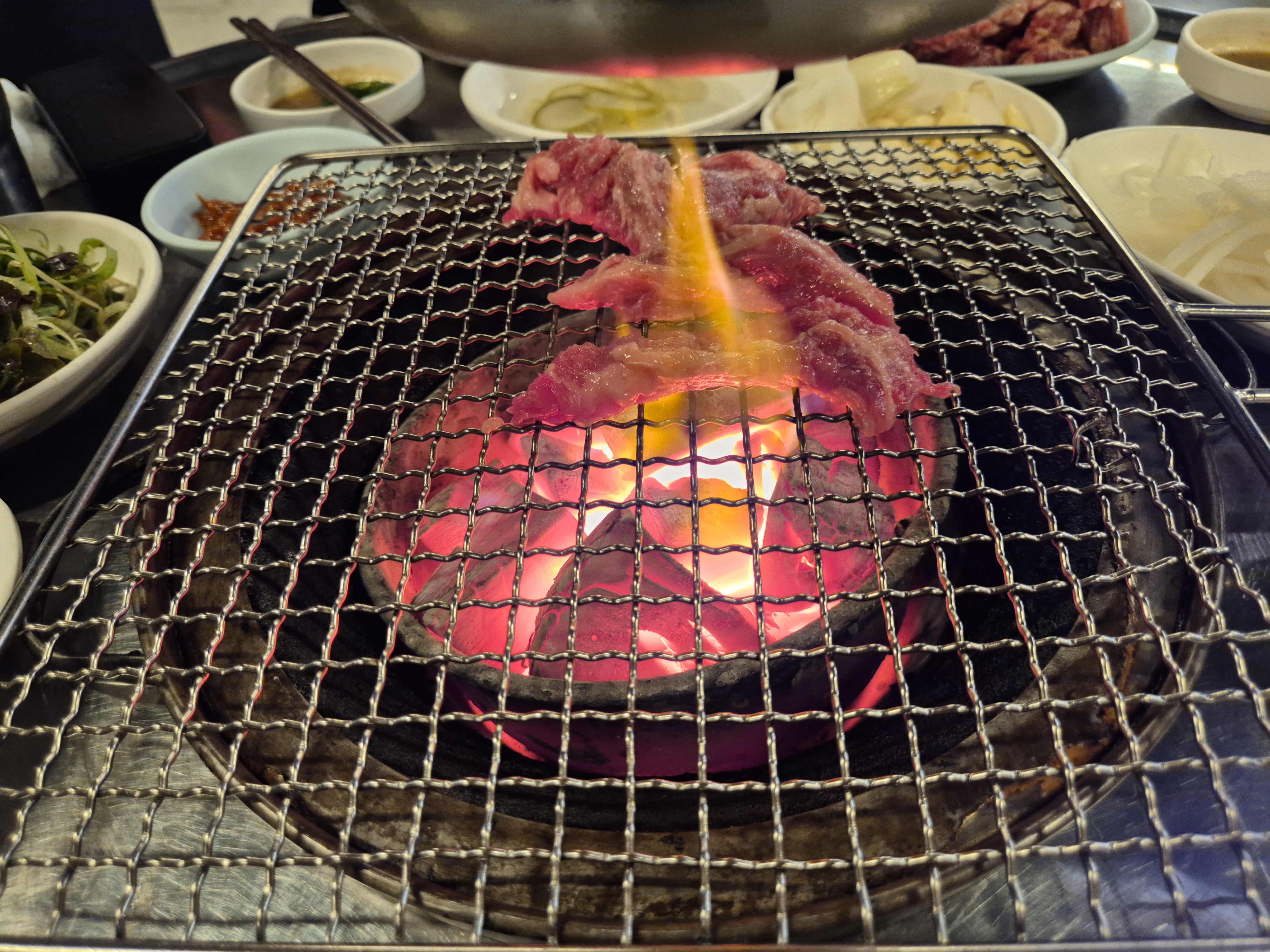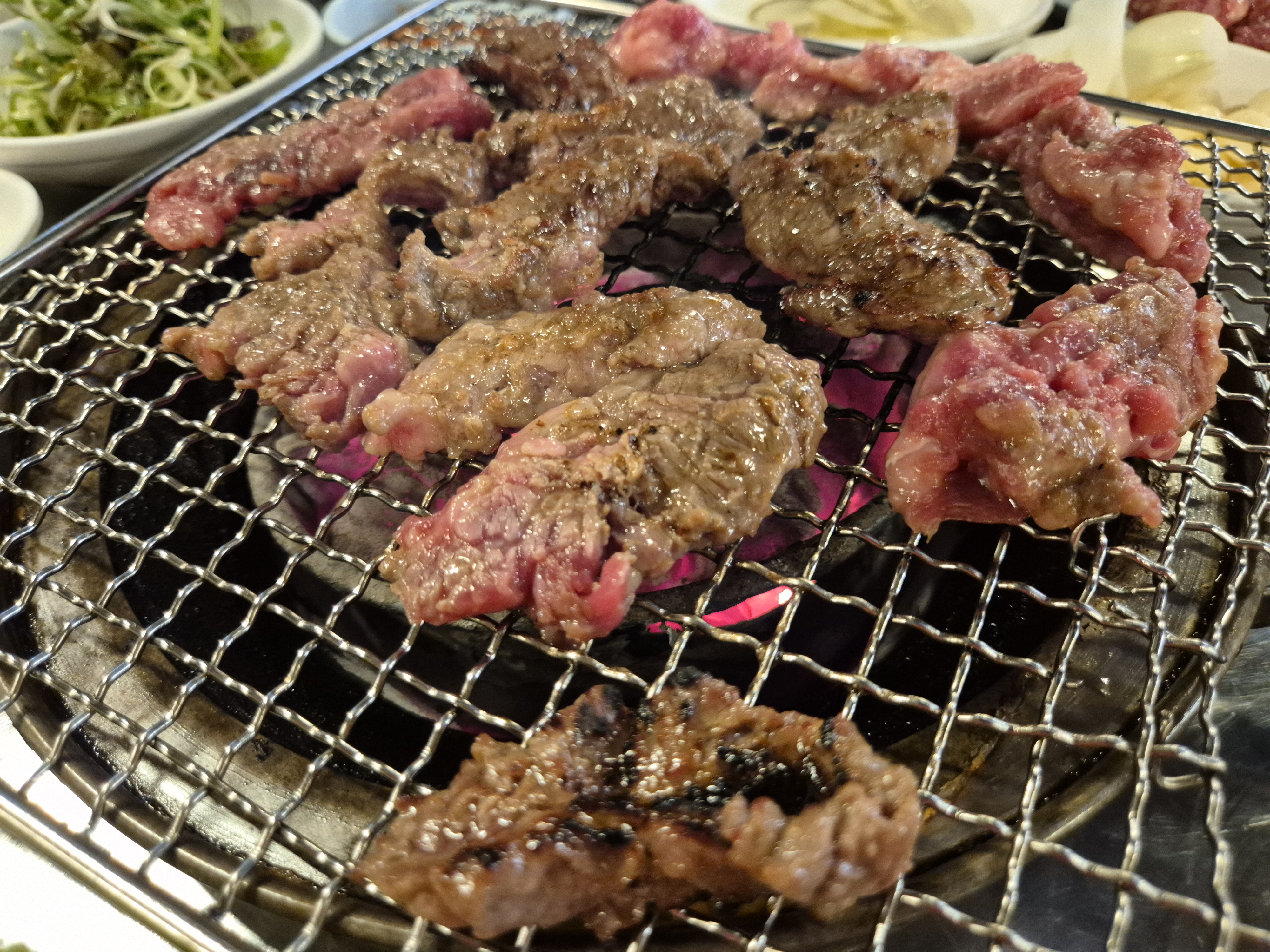 오로지 갈비살 하나만 취급하는 곳인데, 밑간이 된 갈비살이 불판 위에서 지글지글 익을 때 다들 감탄사를 쏟아냈던 기억이 납니다. 나중에서야 미국산이라는 걸 알았지만, 그땐 맛이 전부였으니까요.
