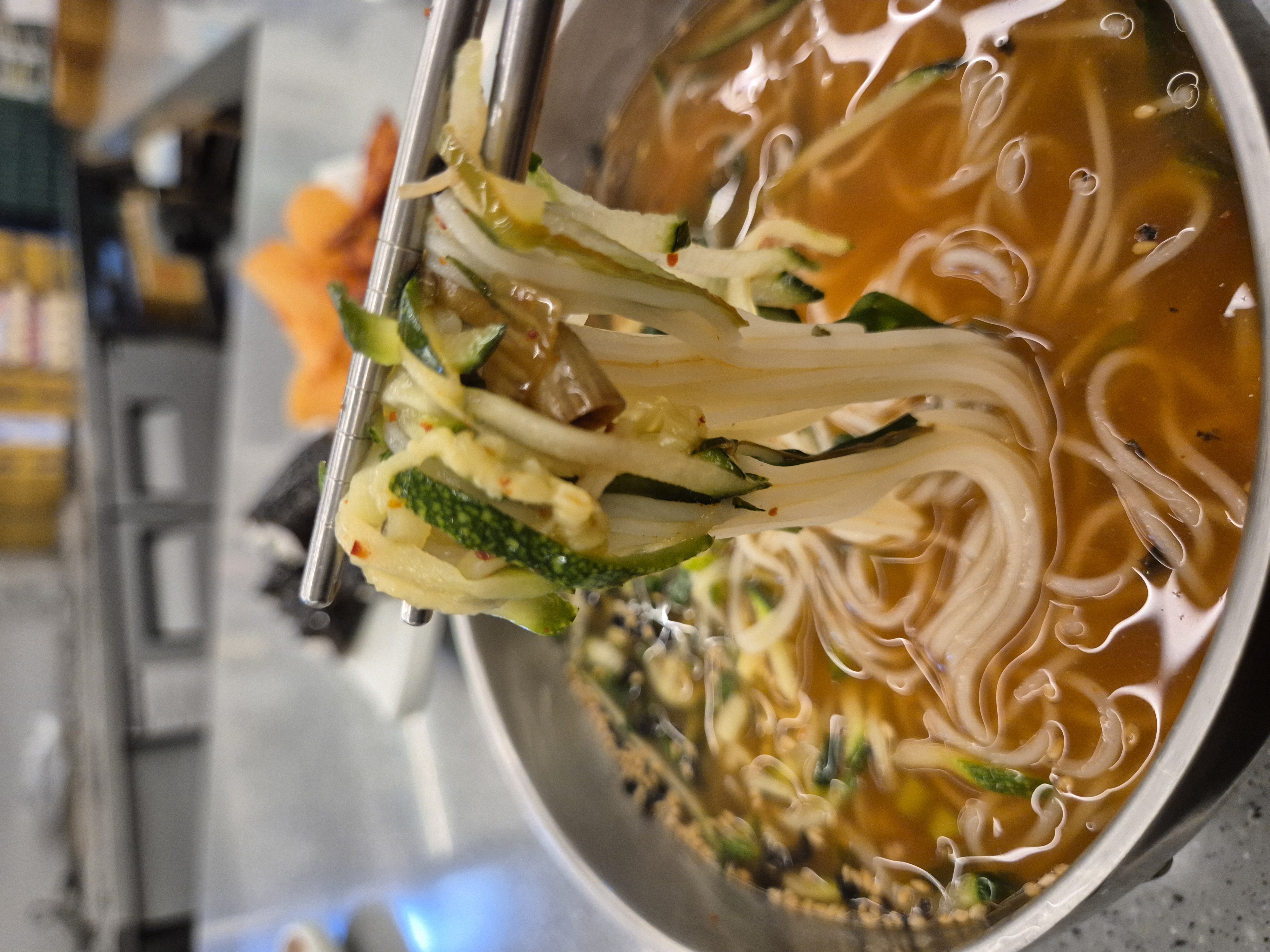 그때 따뜻한 국수 국물은 술에 지친 위를 부드럽게 달래주었고,