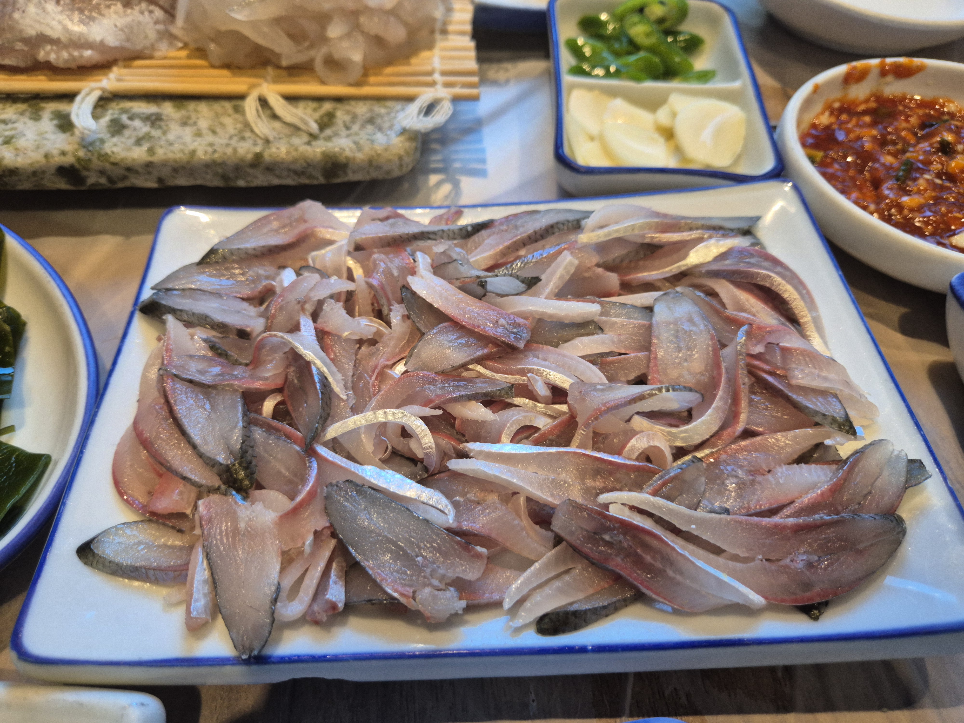 메인으로 나온 회는 세 종류, 그리고 가을 제철답게 전어회까지!