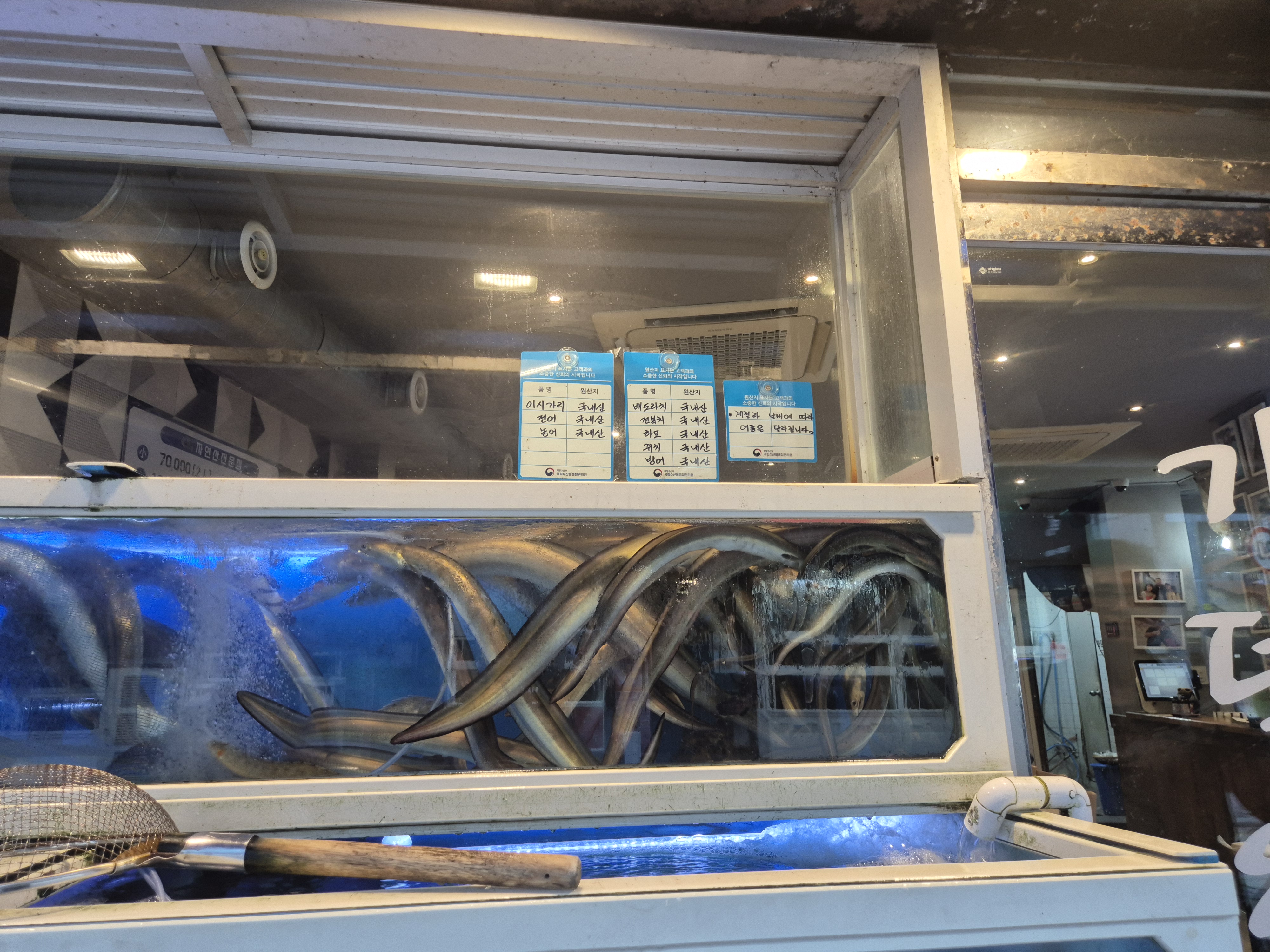 수족관에는 신선한 횟감들이...