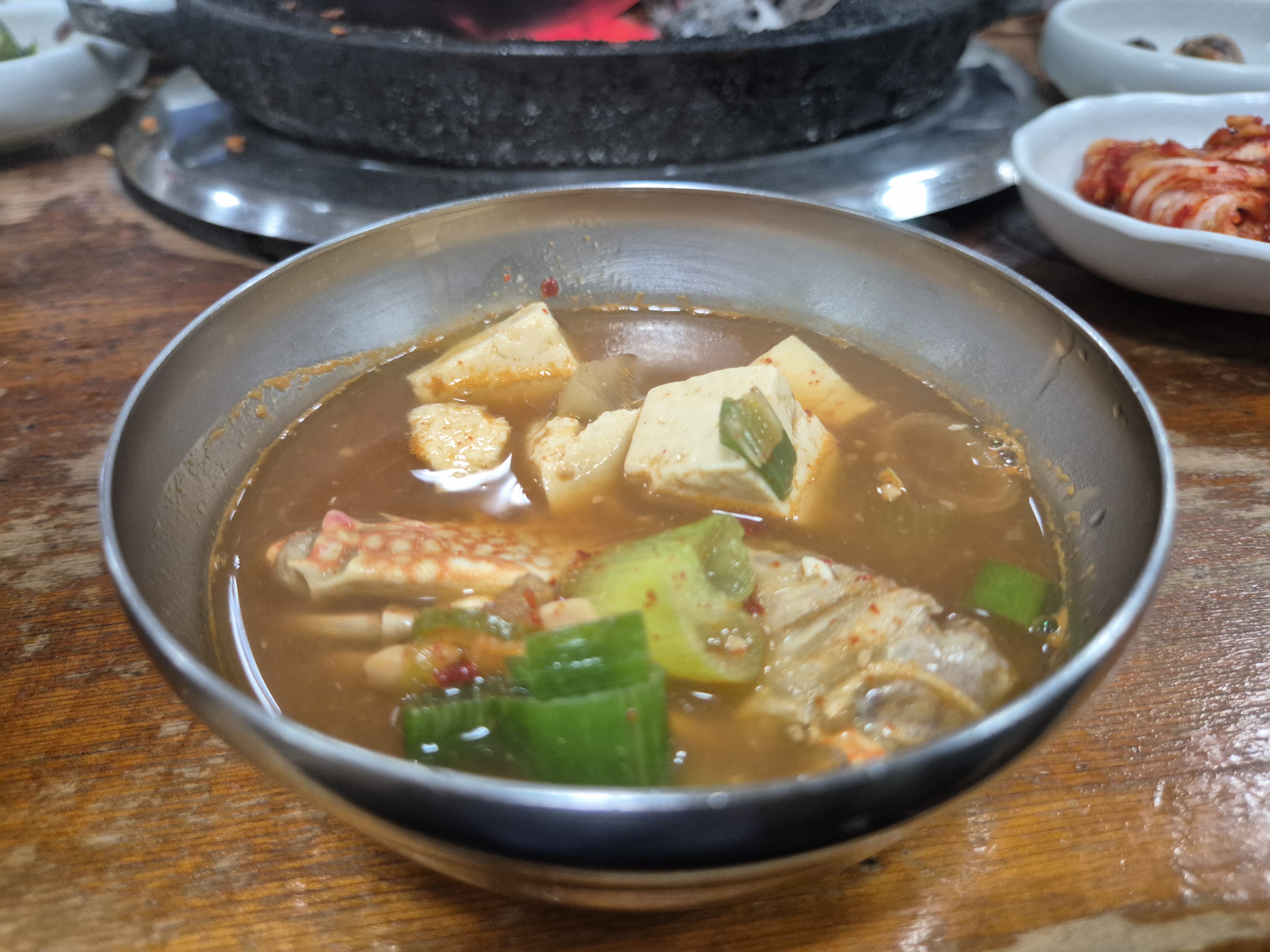 된장찌개에 꽃게가 비친 듯 보이네요.