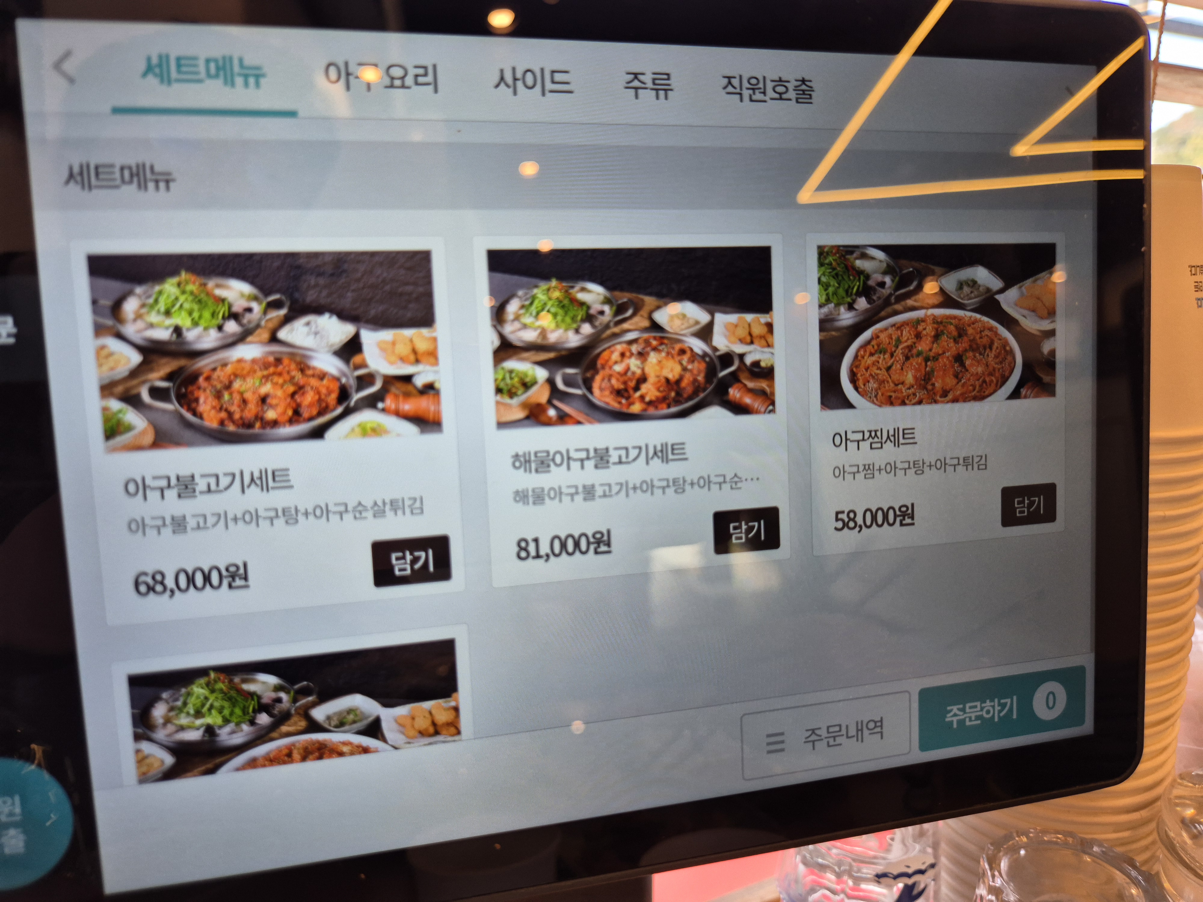 저희는 4명이서 해물 아구 불고기 세트(81,000원)에 2만 원을 추가하여 넉넉하게 주문했습니다.