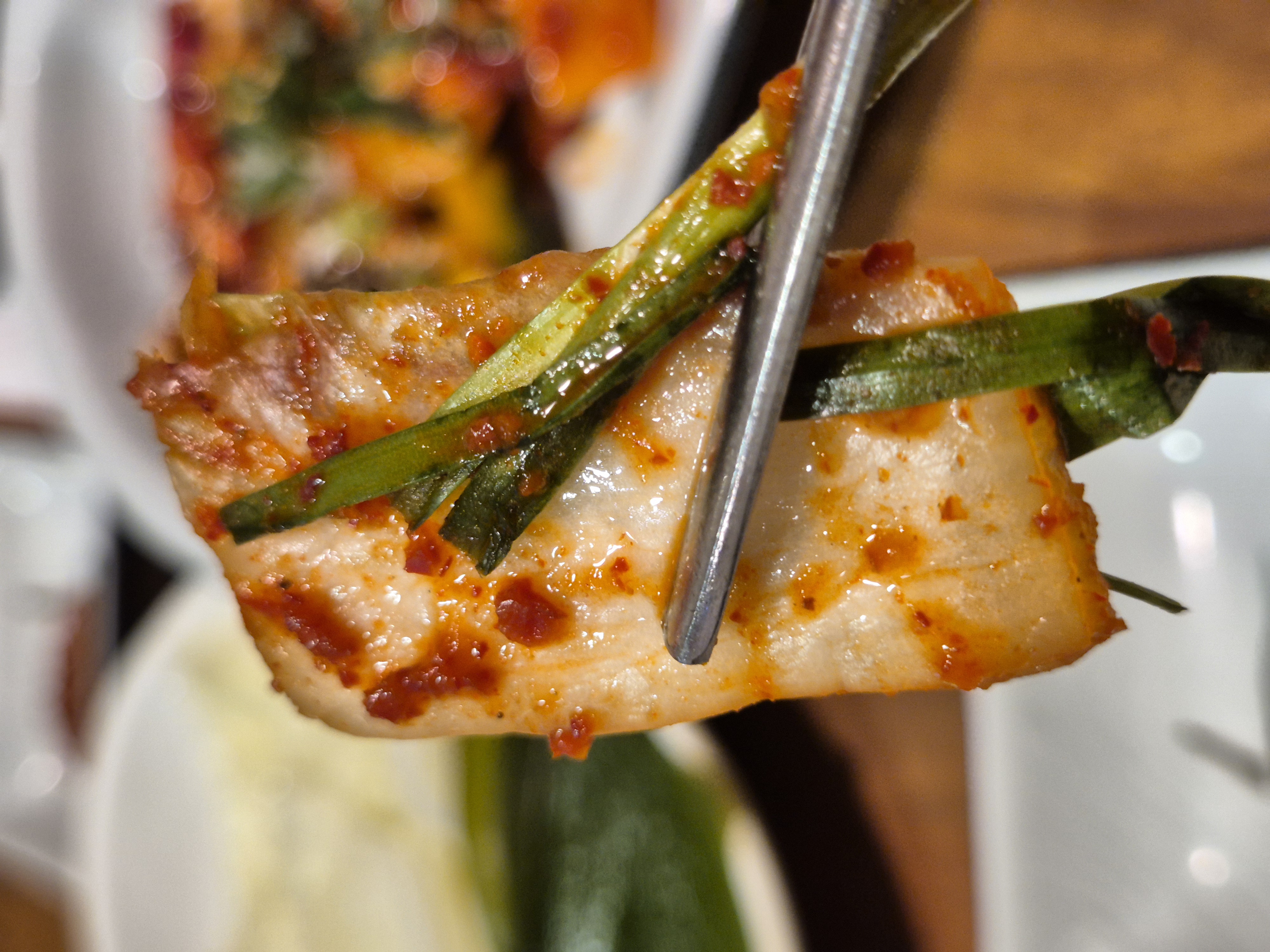 겉절이 형태의 배추와 부추가 잘 어우러져 식욕을 자극합니다.