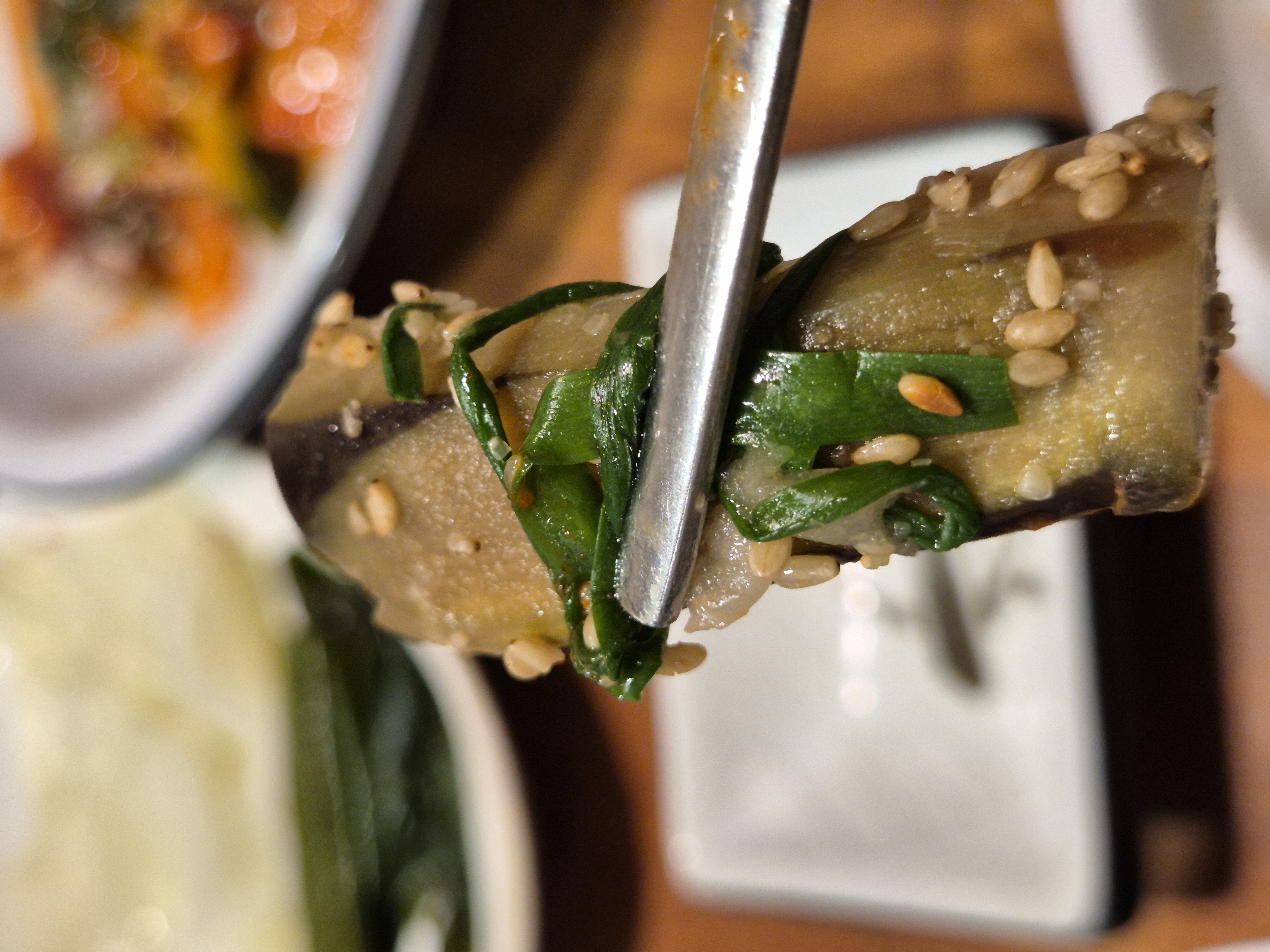 가지무침. 보통 물컹한 식감 때문에 즐겨 먹지 않는데 이곳은 거부할 수 없는 무침의 손맛이 젓가락을 계속 움직이게 합니다.