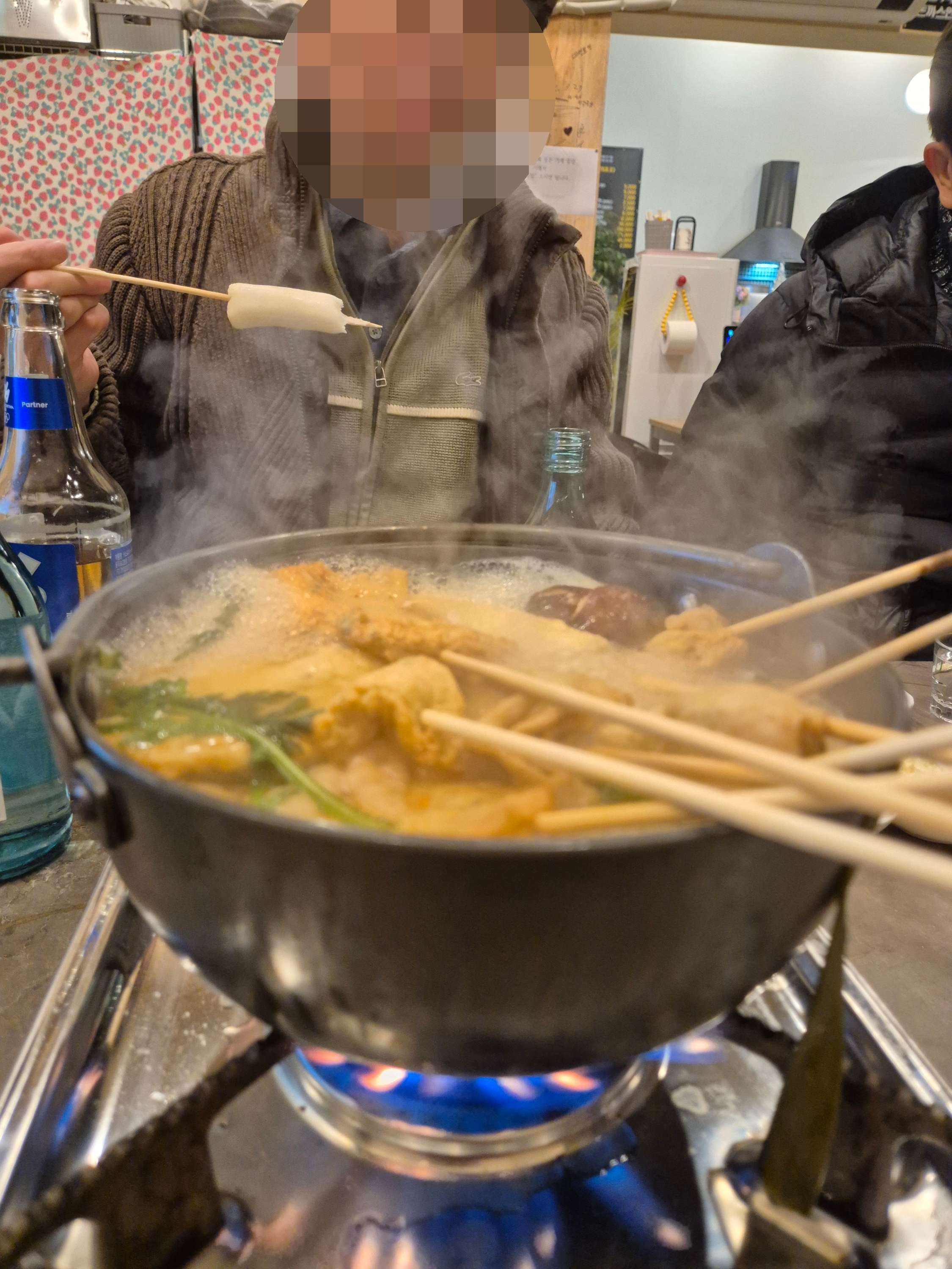 후배는 물떡 하나를 잡았네요. 물떡은 부산에서 시작된 것 아시죠?