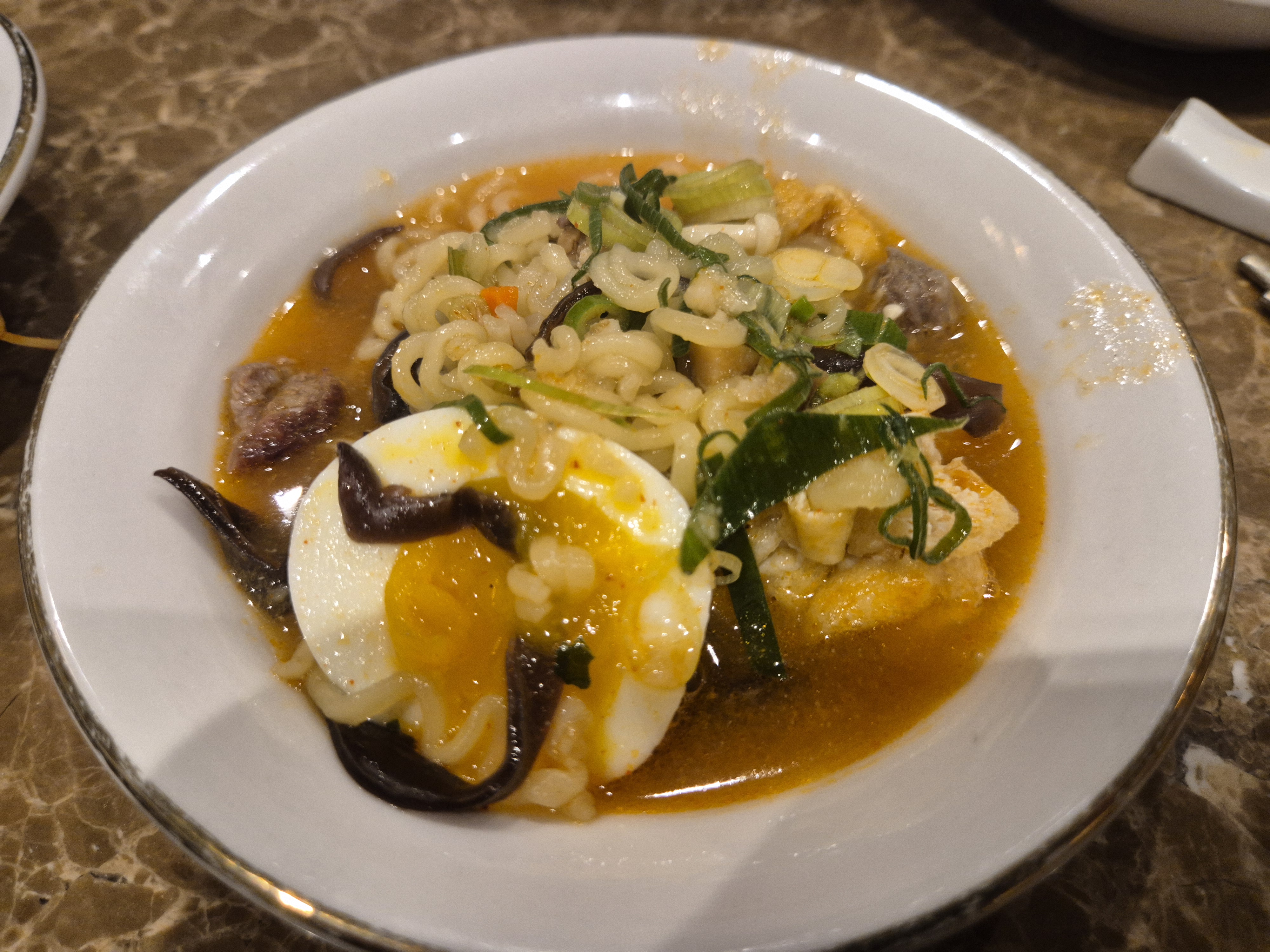 고기를 다 먹어갈 때쯤, 우리에겐 통과 의례가 하나 남아있죠. 바로 티본라면입니다. 이건 그냥 사이드 메뉴가 아니라 요리라고 보셔야 해요.