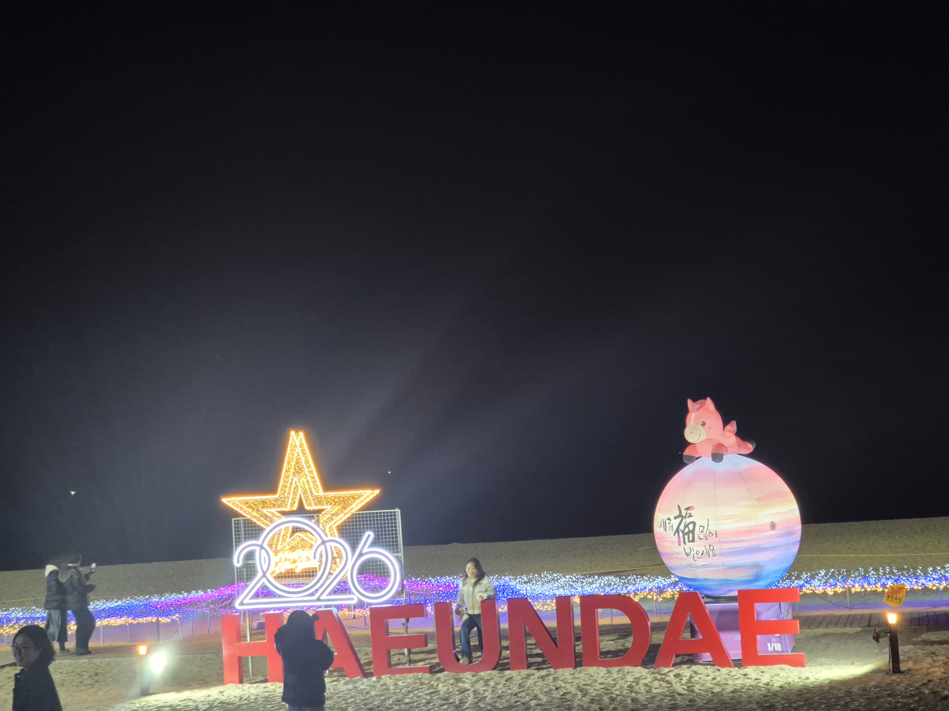 해운대 해변과 다음날 일출 사진 몇 장