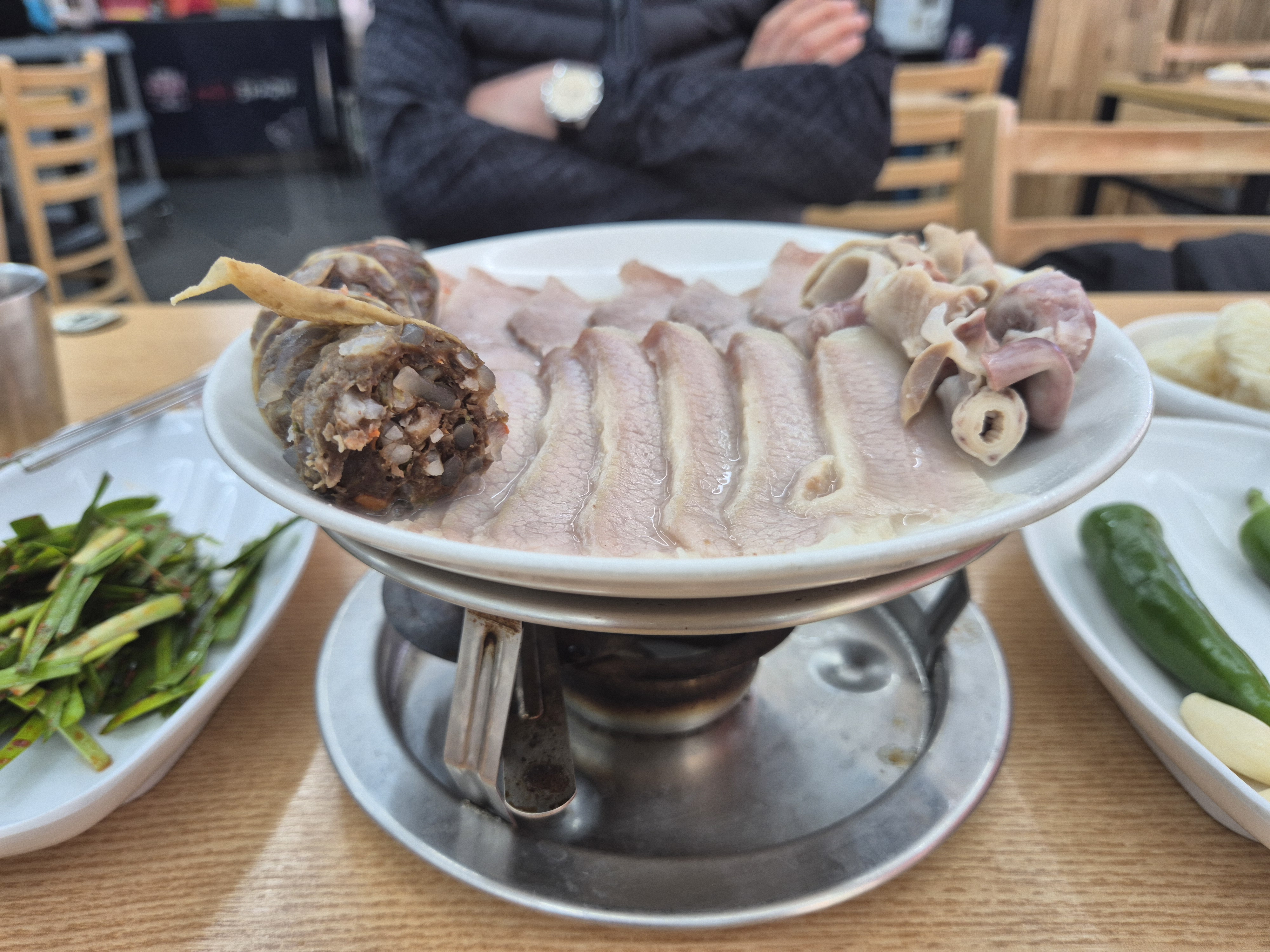 맛보기 수육입니다. 순대. 항정. 삼겹. 뽕