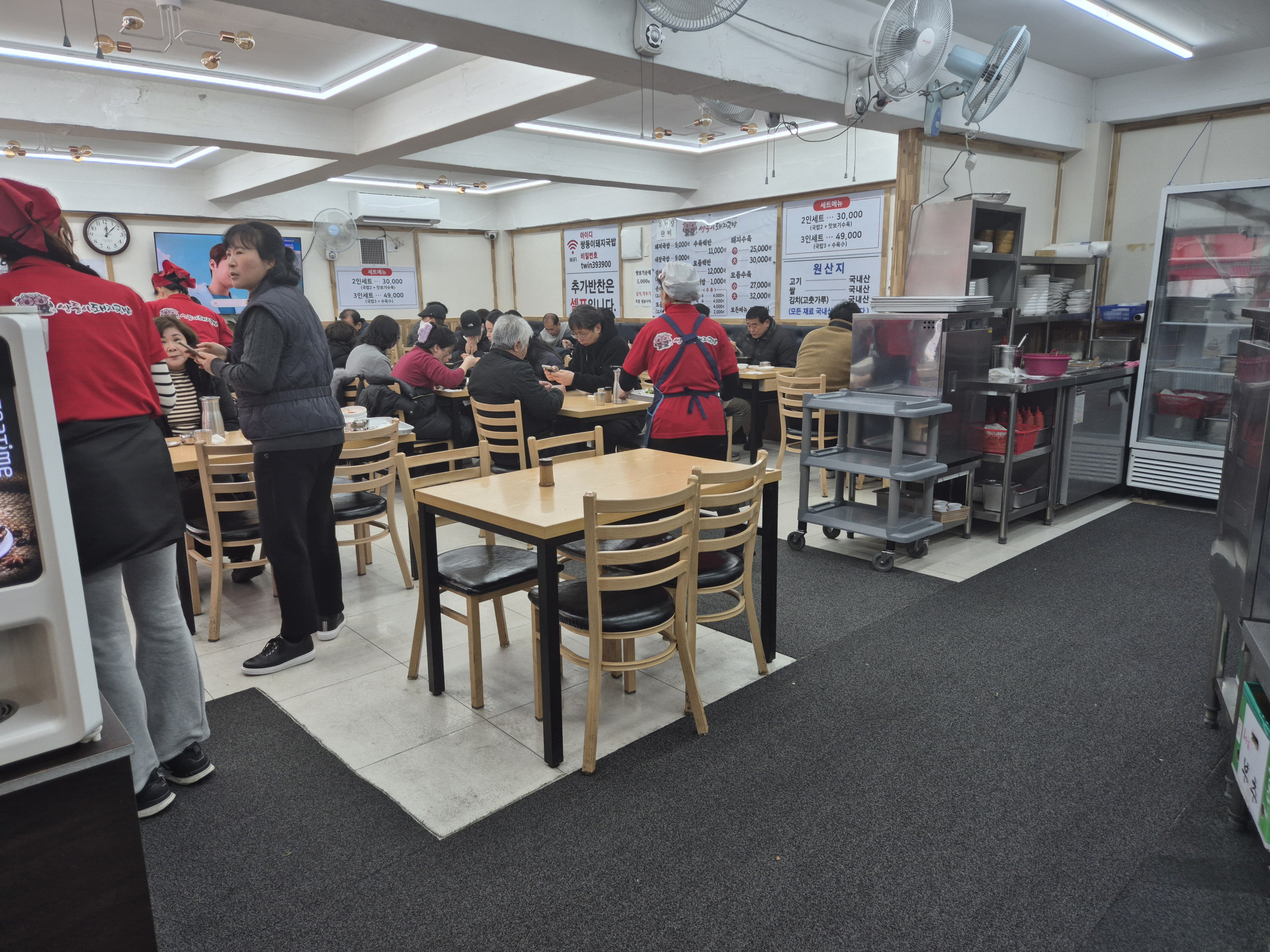 가게는 이 추운 날씨에 만석입니다.